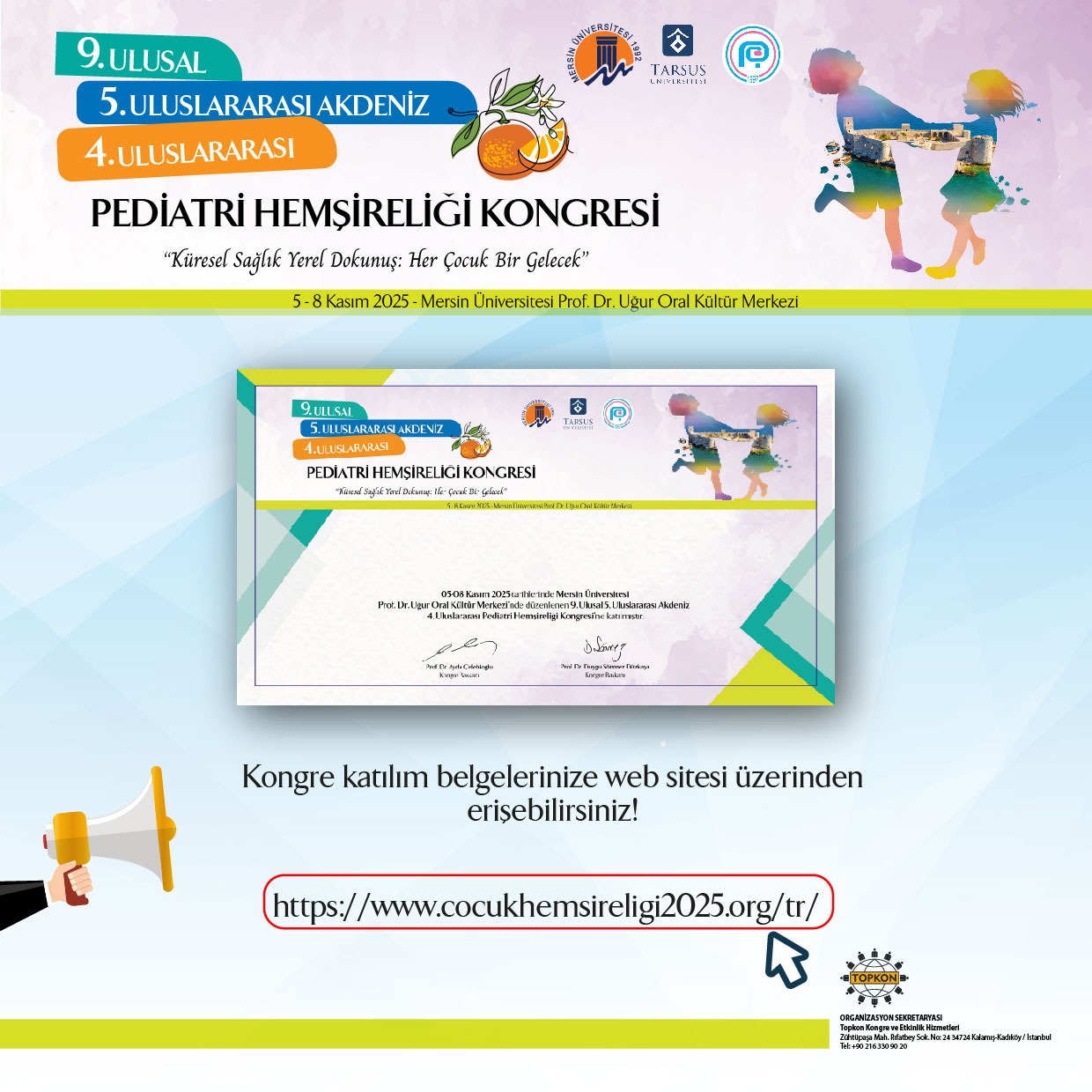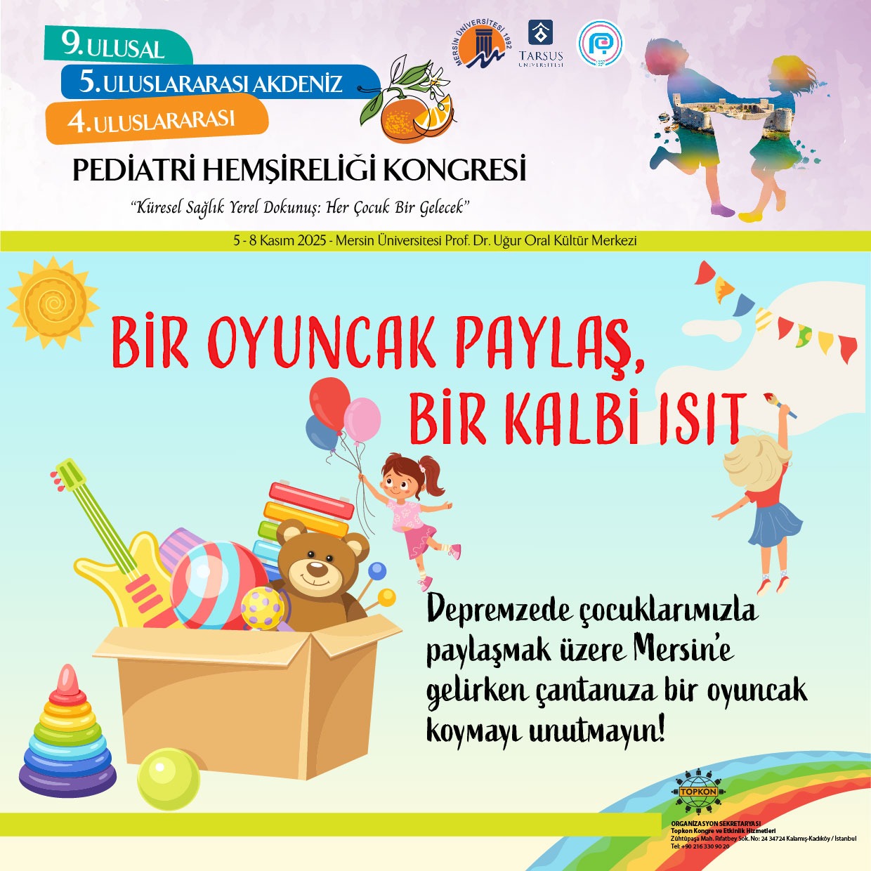 We are honored to invite you to the 9th National, 5th International Mediterranean, and 4th International Pediatric Nursing Congress themed "Global Health, Local Touch: Every Child is a Future," organized to improve the health and well-being of our children, our hopes for the future.